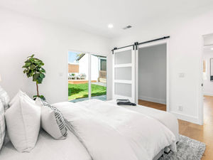 This 3-bedroom home comes with huge windows designed to maximize natural lighting. The interior, from the walls down to the furniture and accessories, is mostly white. Plants are scattered all around to make the feel fresh and airy. The wooden pieces of furniture add a rustic character to the space.